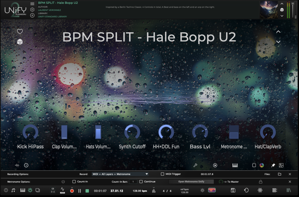 Built-In Recorder now can capture your performance as Audio + MIDI and can be a stereo mix or stems from every Layer in your Patch. The Metronome can play any Unify Patch as a metronome so you can now practice or perform things far better than with just a click!