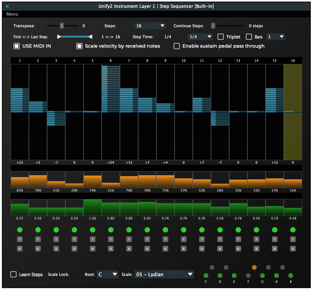 New StepSequencer with tons of controls for creating fun sequences directly inside of Unify 2.0!