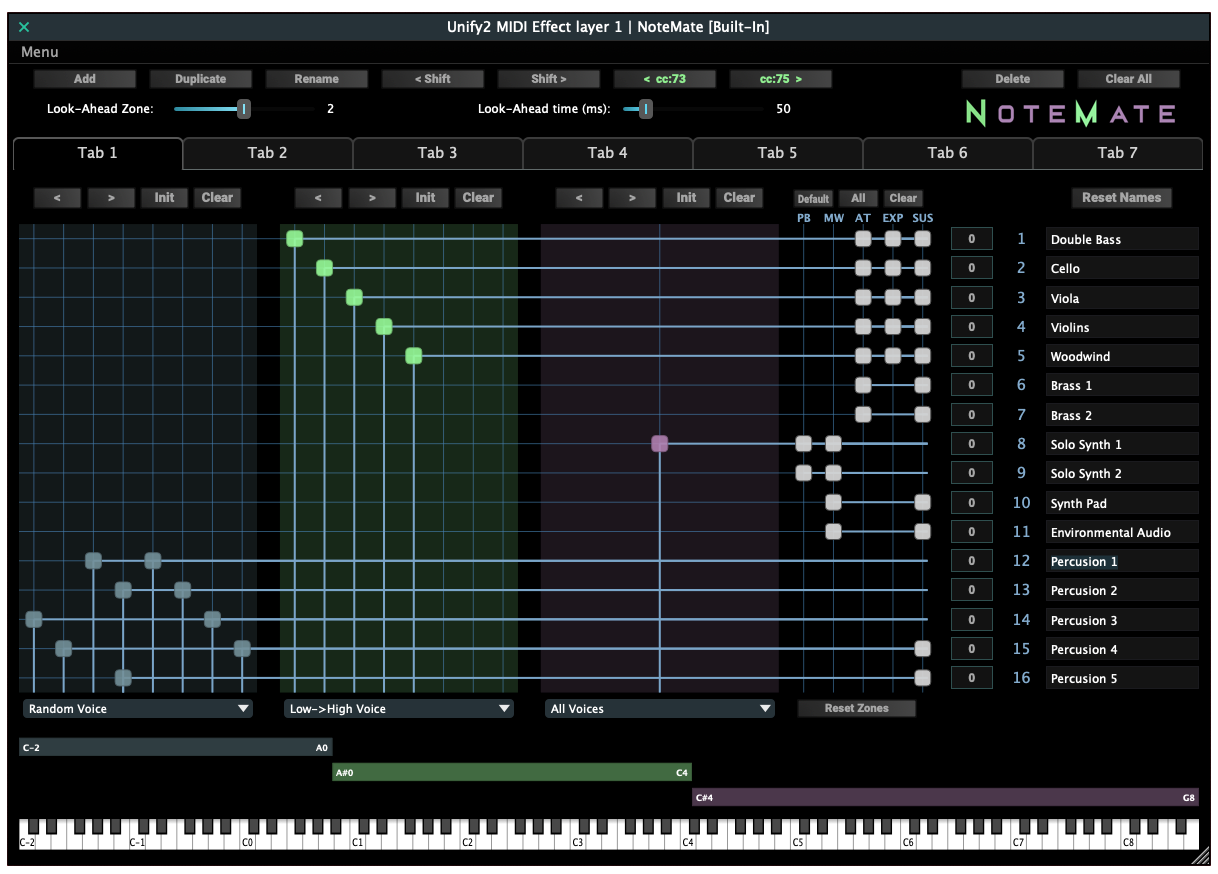 New MIDI Effect NoteMate which allows assignment to MIDI Channel by note number – you can split instruments dynamically across your chords and have them always play in the order of channel assignments, with optional random and all-voices/solo mode and 3 detection zones.